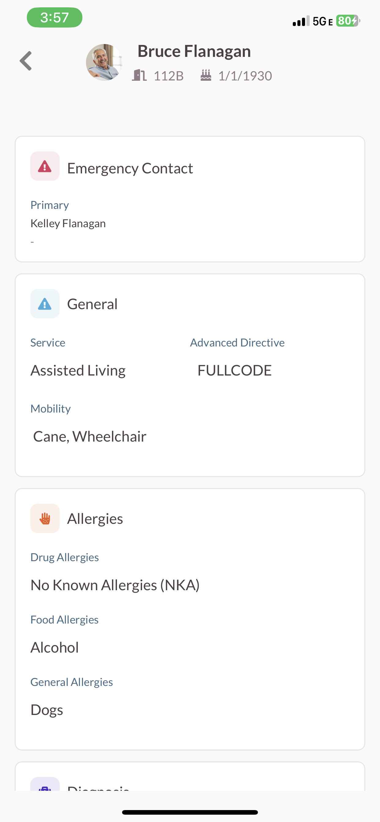 Note: Based on the individual needs of the resident, some profiles will display more information than others.
