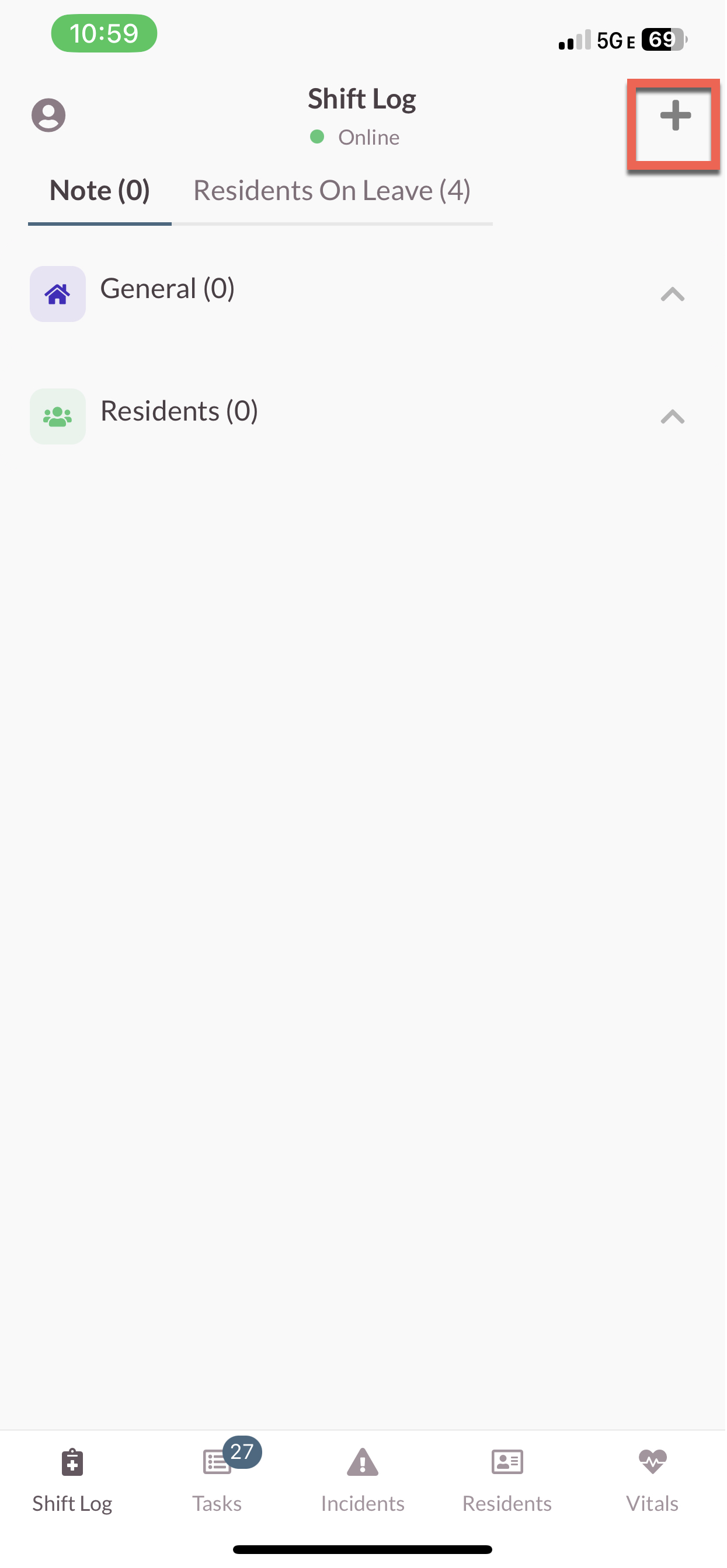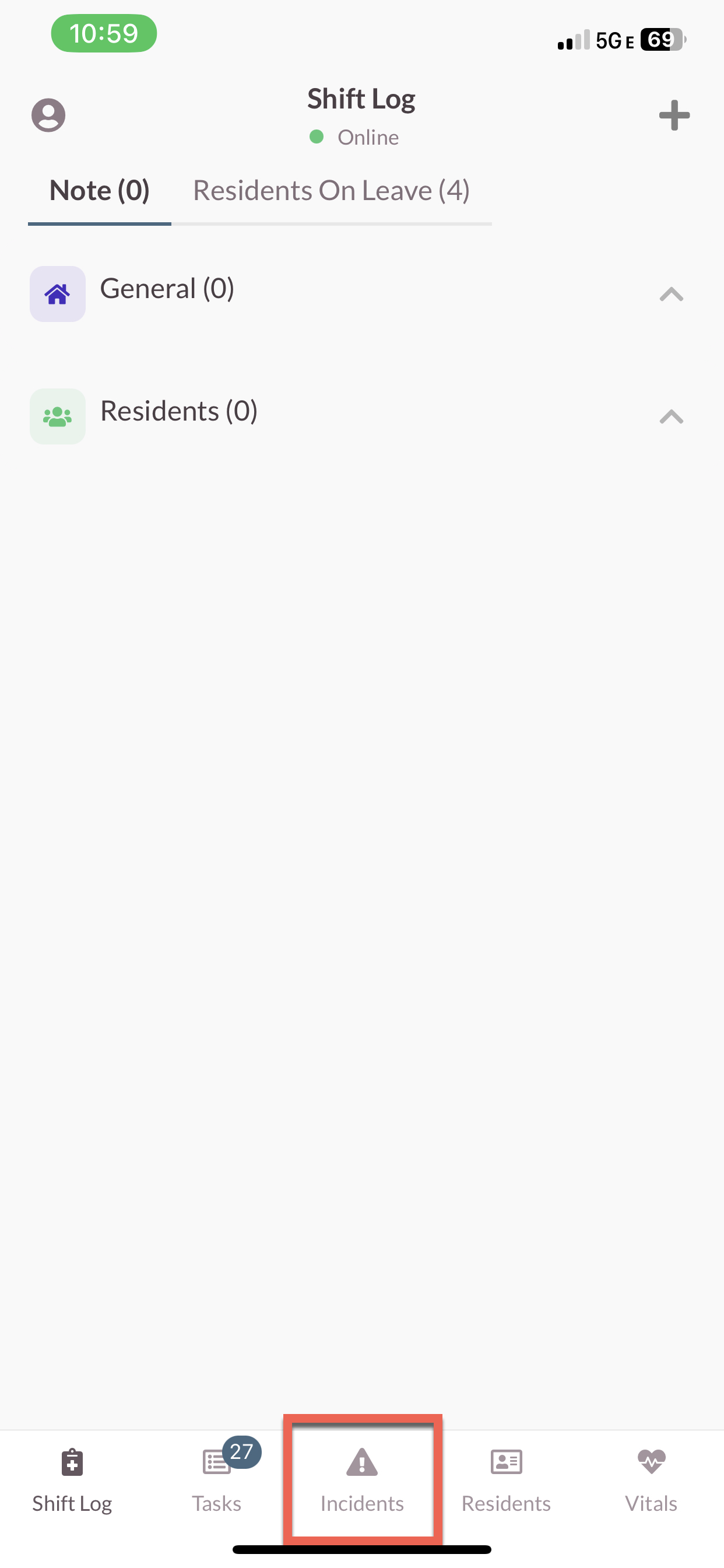 Step 3: To report an incident, click the plus sign in the top right corner.