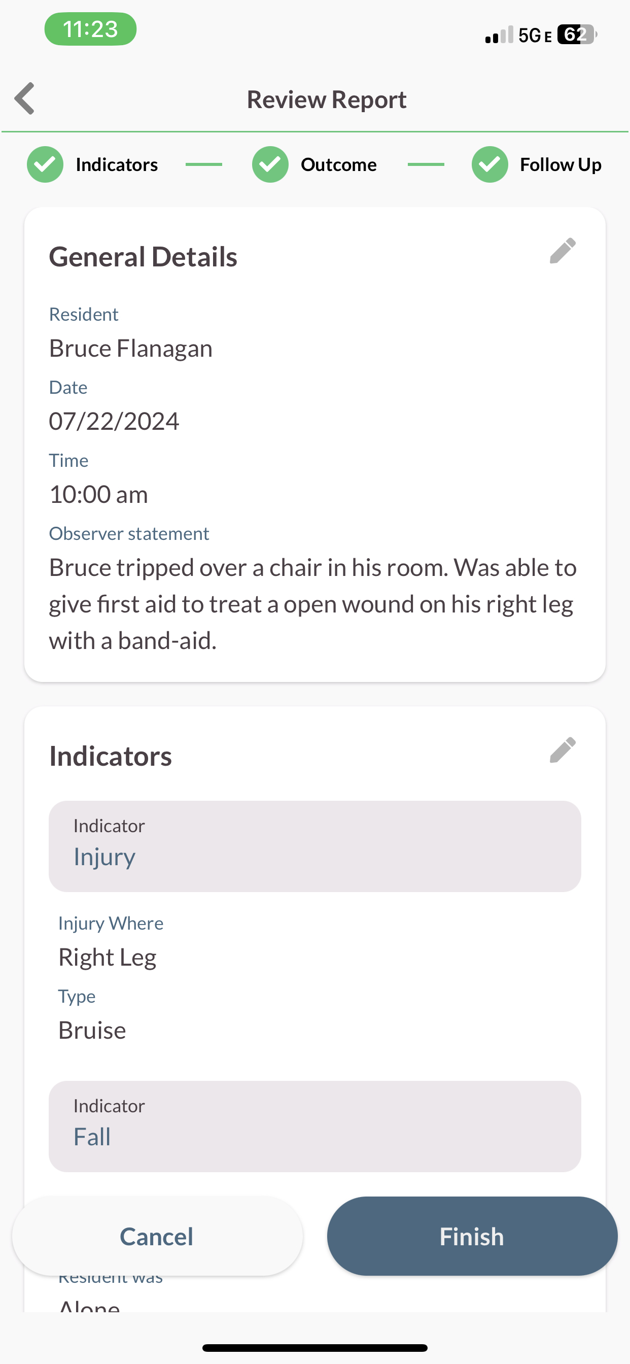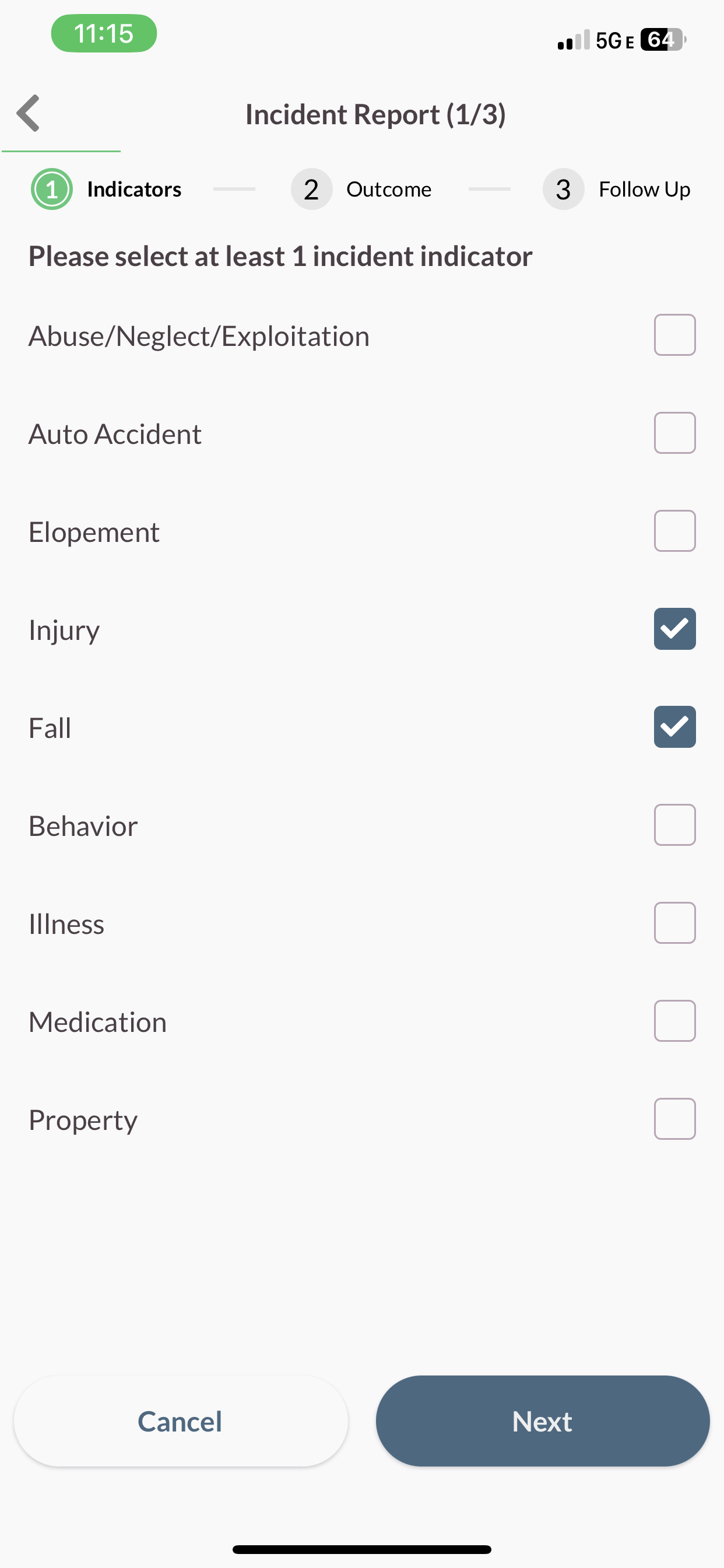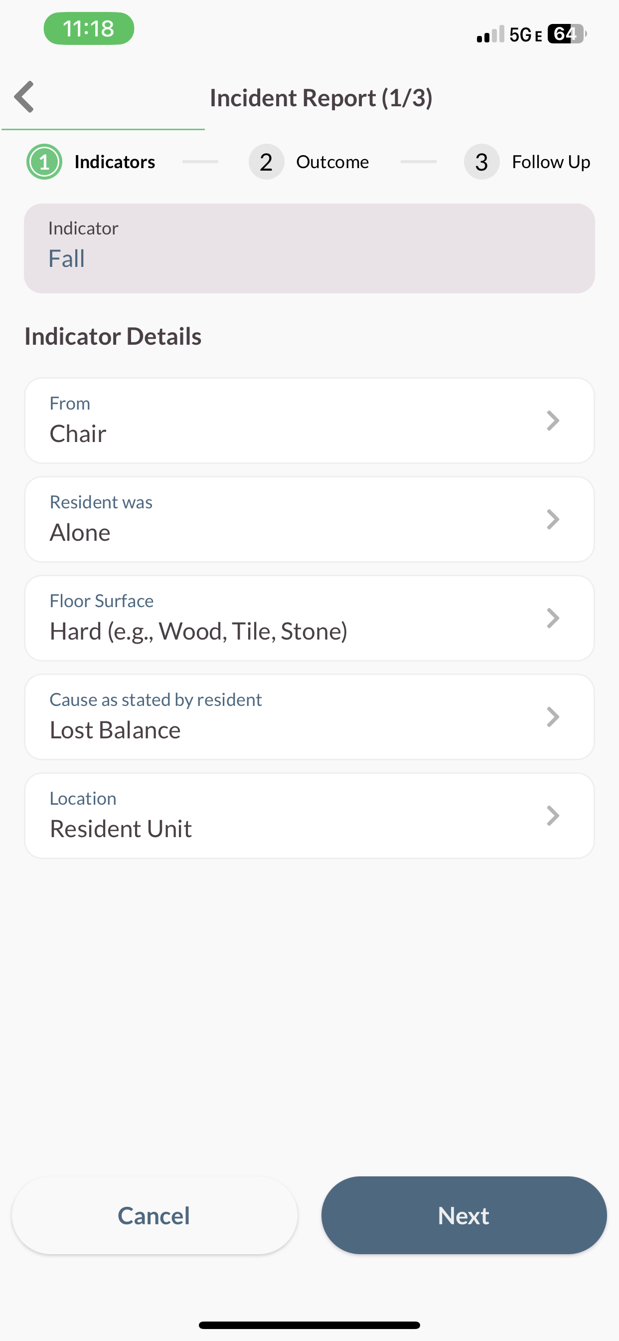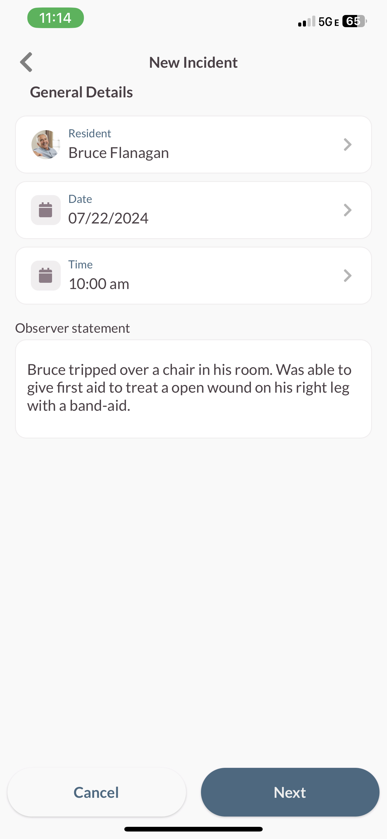 Step 4: Choose Resident, Date, and Time Observed. Enter the Observer Statement. Select Next.