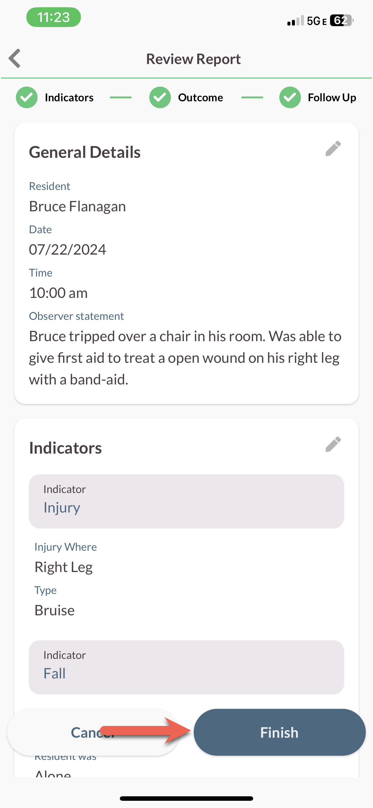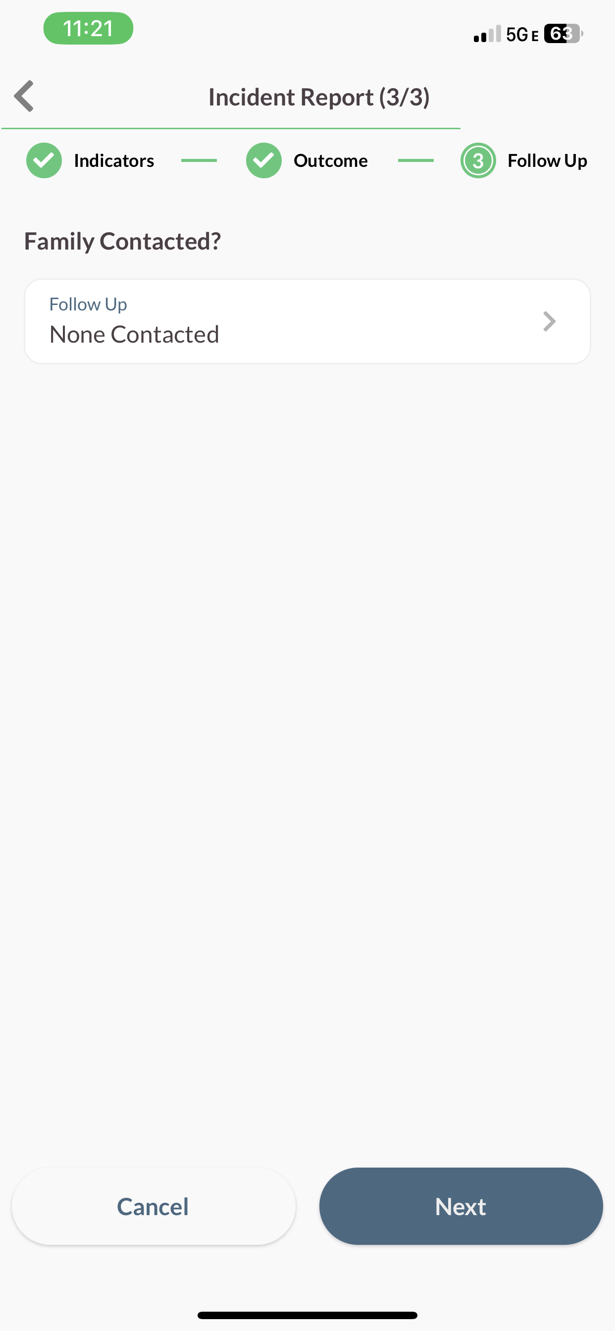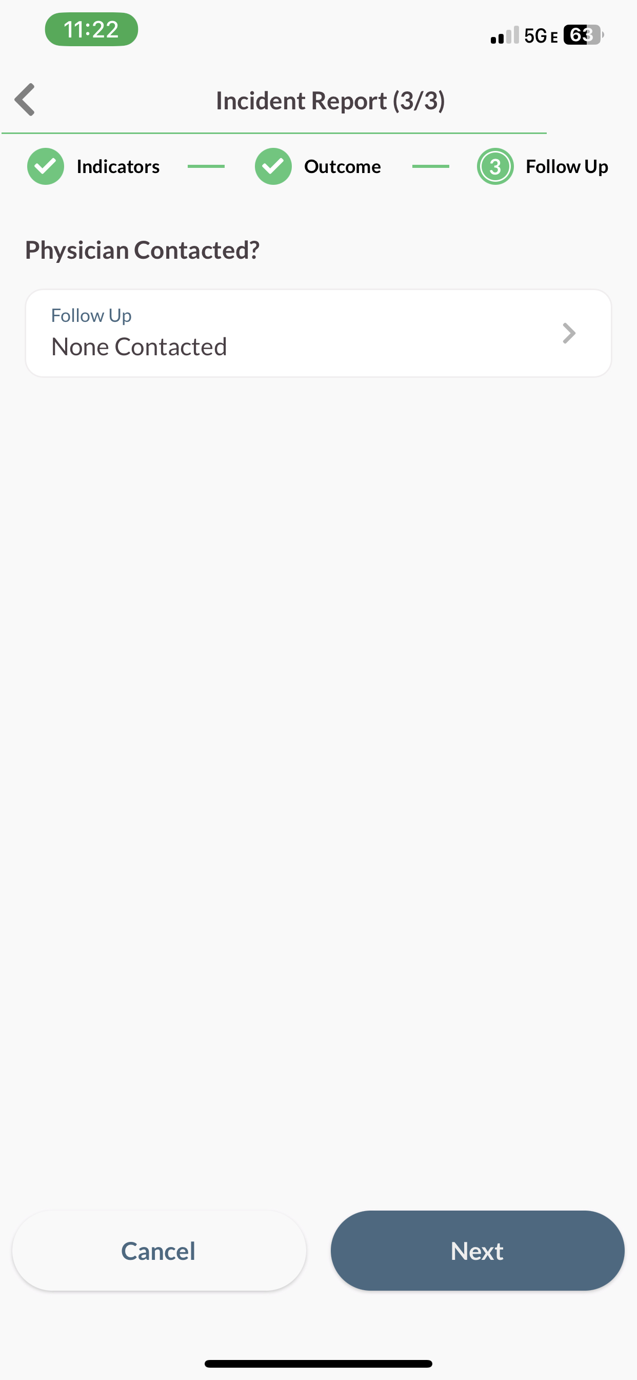 Step 10: Select through all follow ups, which include family contact, and physician contact.