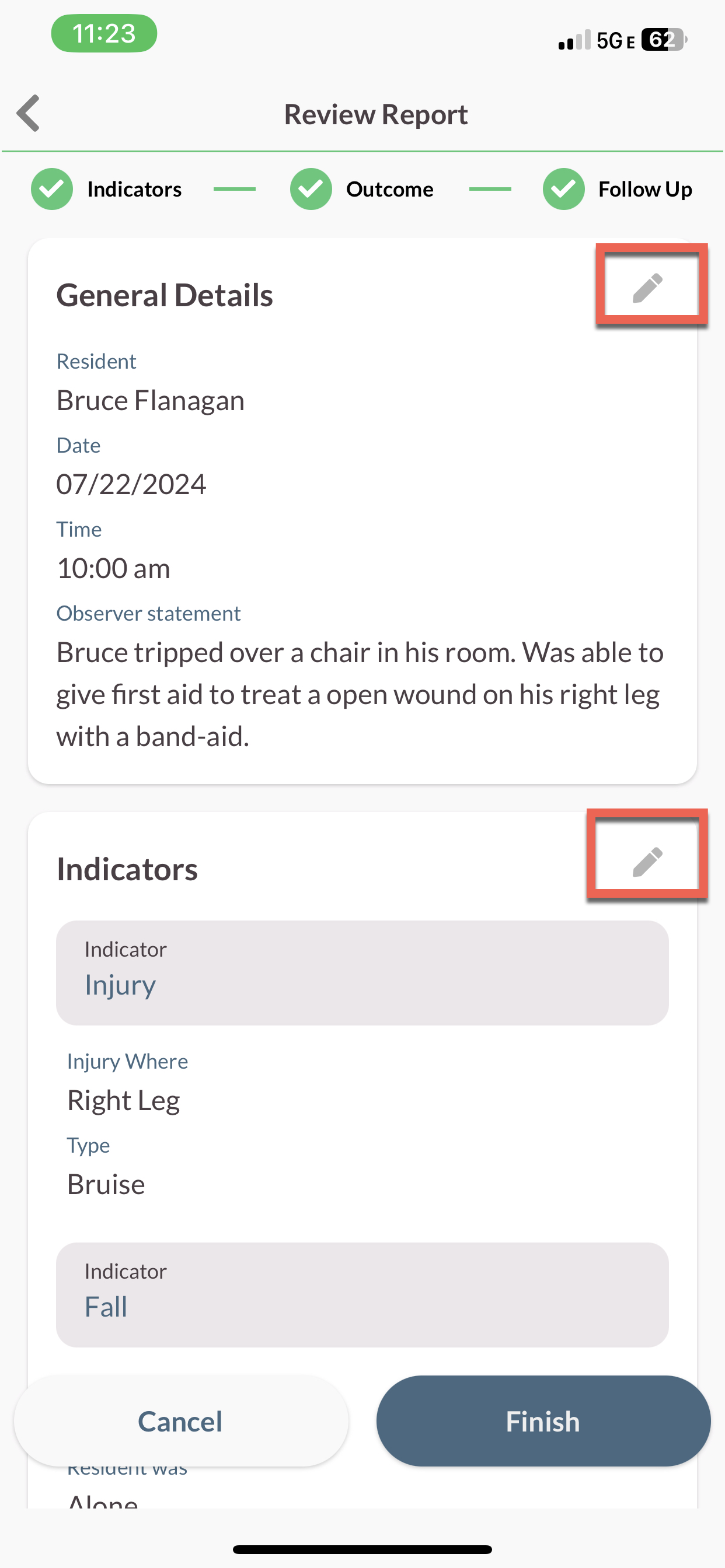 Step 14: To view or edit the information, tap the pencil icon of any section to drill-down and view the chosen dimensions.