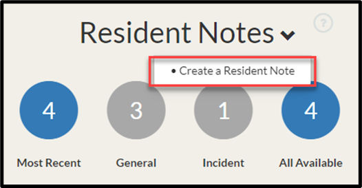 Step 3: In Resident Notes section, select the drop-down arrow, and then select Create a Resident Note.