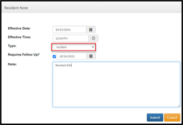 Step 5: Choose a Note Type of Incident.