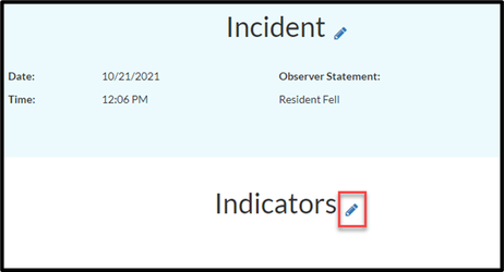 Step 8: Select the pencil icon next to Indicators to add information about the Incident.