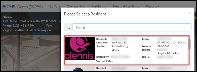 Step 2: Select a Resident.