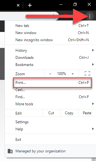 Note: The keyboard shortcut Ctrl + P can be used in all major internet browsers to open the print window.
