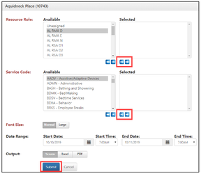 - Choose the resource roles you want to print by clicking on them to highlight your selection. They can be moved to the box on the right-hand side by clicking on the single arrow pointing to the right.
