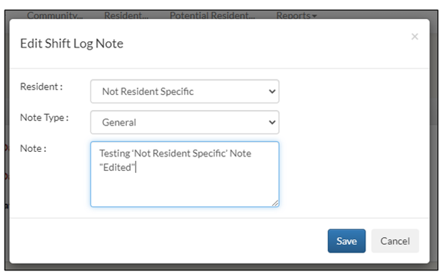 Step 2: Edit your changes in the Edit Shift Log Note Module.