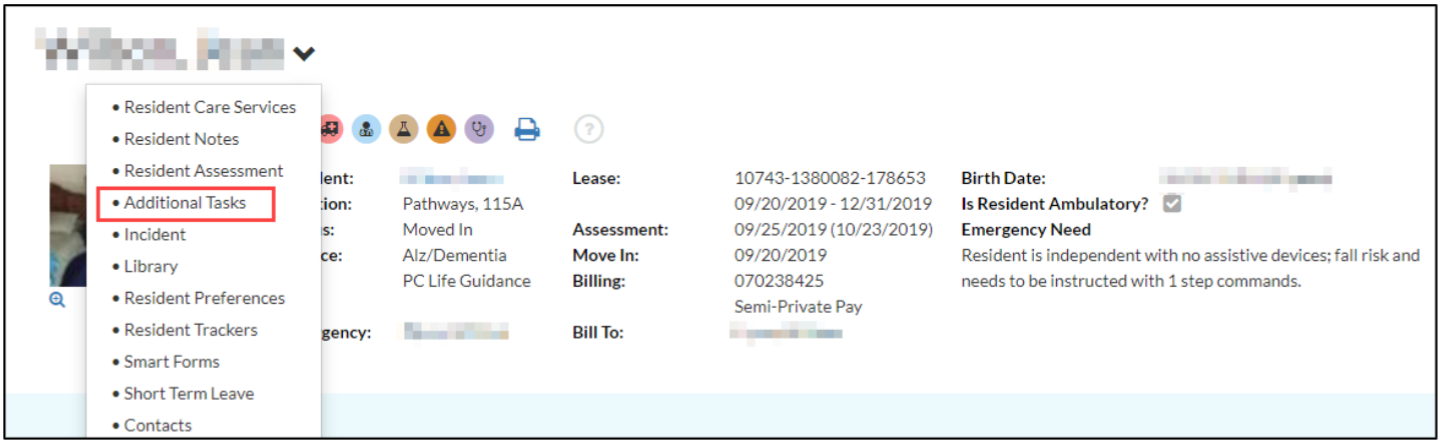 Step 1: Choose a resident from the “Resident…” option located in the menu bar at the top of every page. This will redirect you to the resident’s profile page.