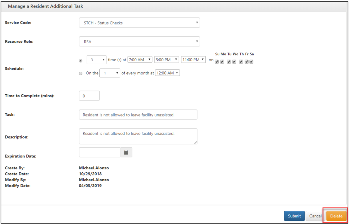 Step 5: Click on the “Delete” button at the bottom of the form to delete the tsk from the system.