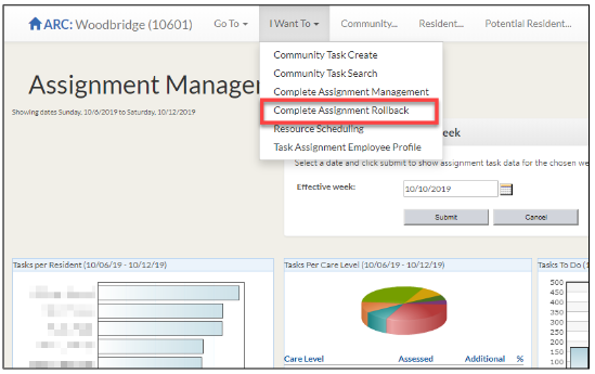 Step 2: Choose Complete Assignment Rollback from the “I Want To” drop down.