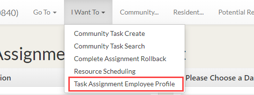 Step 2: From the I Want To dropdown choose Task Assignment Employee Profile.