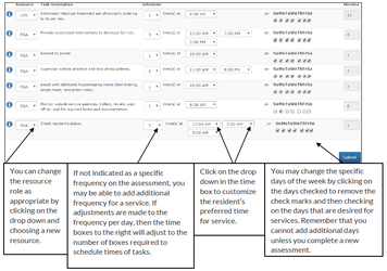 - You have the ability to change the frequency of the tasks provided only if the answer chosen on the assessment allows a range of frequencies and is not specific to the number of times a service is to be provided. For example- You cannot change frequency per week or day on bathing/showering because the answers on the assessment are very specific as to the number of days per week we will assist with showers. If you need to change the frequency per week of showers, then you will need to reassess the resident.