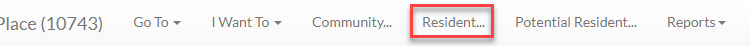 Step 1: Choose a resident from the “Resident…” option located in the menu bar at the top of every page. This will redirect you to the resident’s profile page.