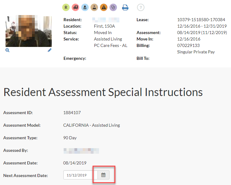 Step 2: From the resident’s profile page, click the dropdown arrow next to the resident’s name and select “Resident Assessment.”
