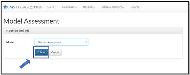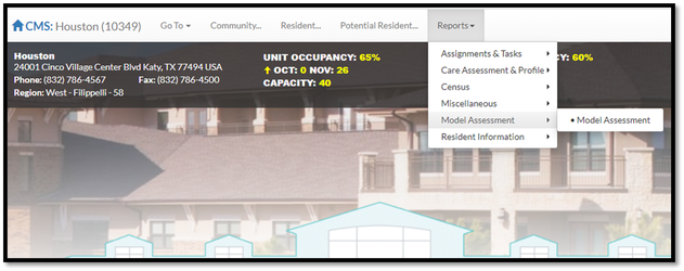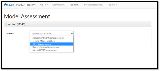 Step 2: On the Model Assessment Report page, select the Model the drop down list. Only assessment models configured to the selected community will display.