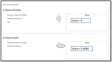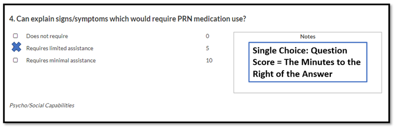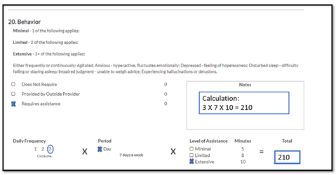 Question Score = # of times per day x 7 x Selected Level of Assistance Minutes