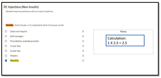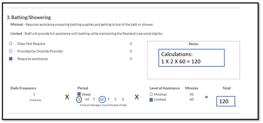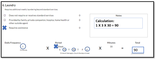 Question Score = 1 time per day x # of days per week x Selected Level of Assistance Minutes