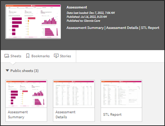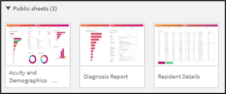 Each App will contain multiple sheets. For example, the Acuity App contains three sheets: Acuity and Demographics, Diagnosis Report, and Resident Details.