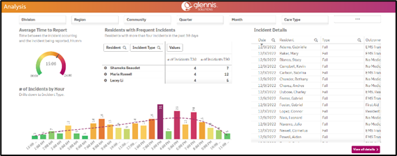 This is just one example of how users can drill into very specific data in order to spot trends and patterns that may allow caregivers to provide better care to residents and lessen the number of incidents