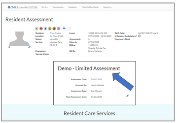 Prior to starting the assessment verify that the Assessment Listed on the Resident Assessment screen is the assessment you are performing. It will also be helpful, but not required to know if you are performing a minute based or a score based assessment.