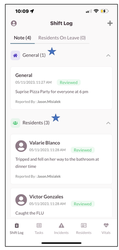 Note: The Shift Log will display all notes for the current day and the two days prior.