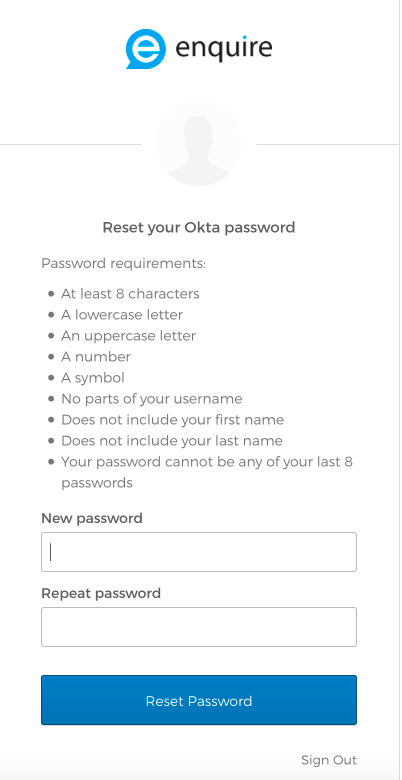 Step 9: Click Reset Password and you will now be logged into Enquire with your new password!