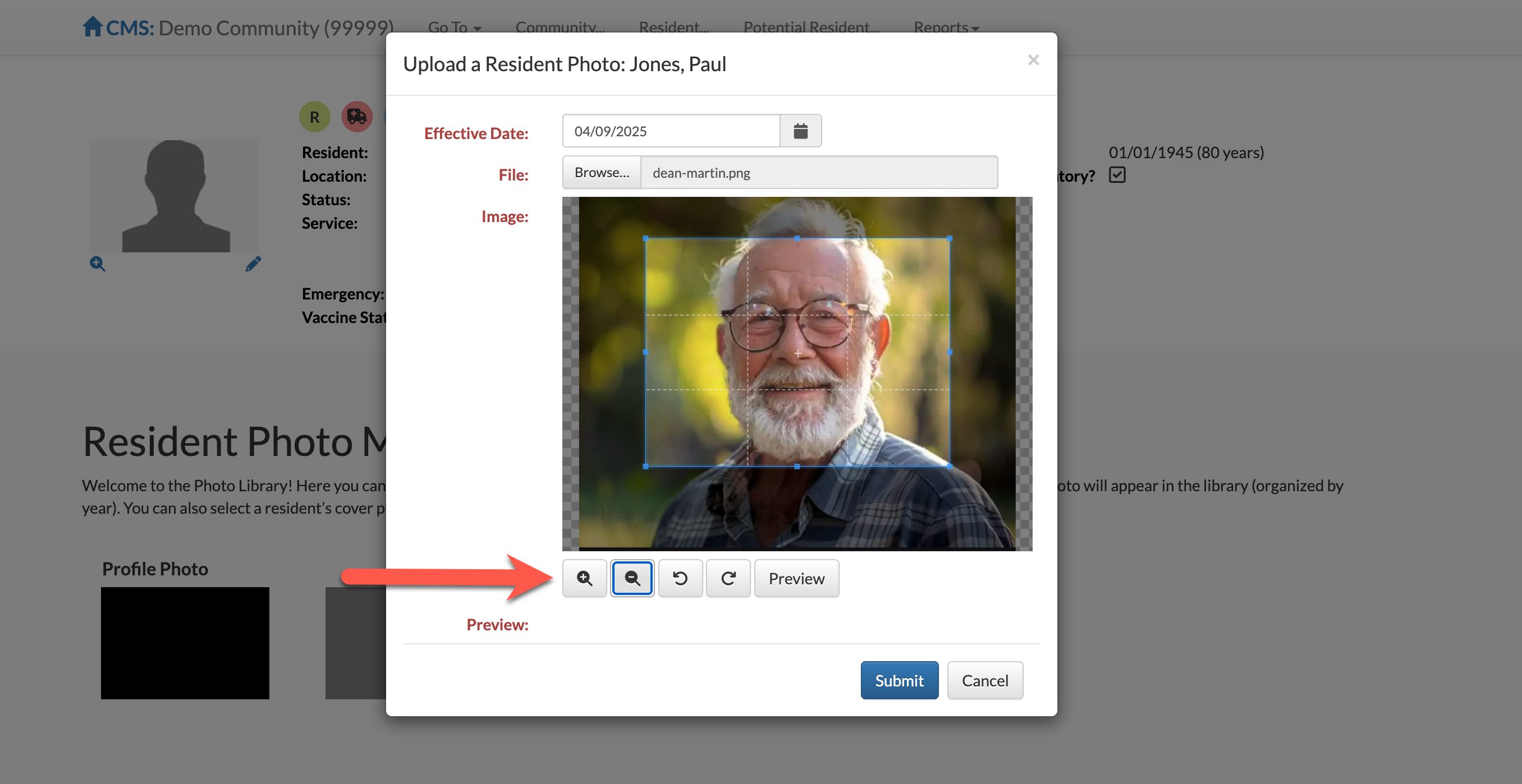 Resident photos can now be edited after being uploaded to a resident's profile. This allows users to efficiently fine-tune resident photos for accurate photo identification! Crop, zoom in or out, rotate, and more in order to set your resident photos as desired!