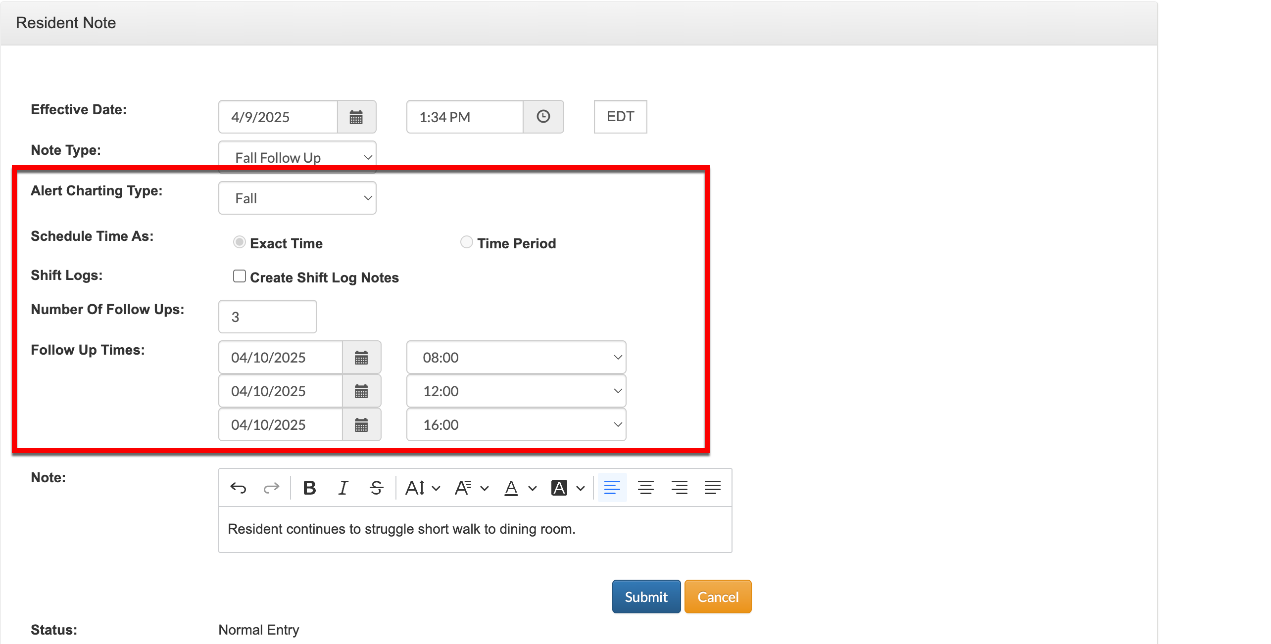 When configured, Alert Charting can now be automatically associated with reported Incidents or manually attached to Resident Notes, allowing Aline Care users to standard follow up times and documentation! Alert Charting follow ups can be required as either a Resident Note or as a Shift Log on CareMobile.