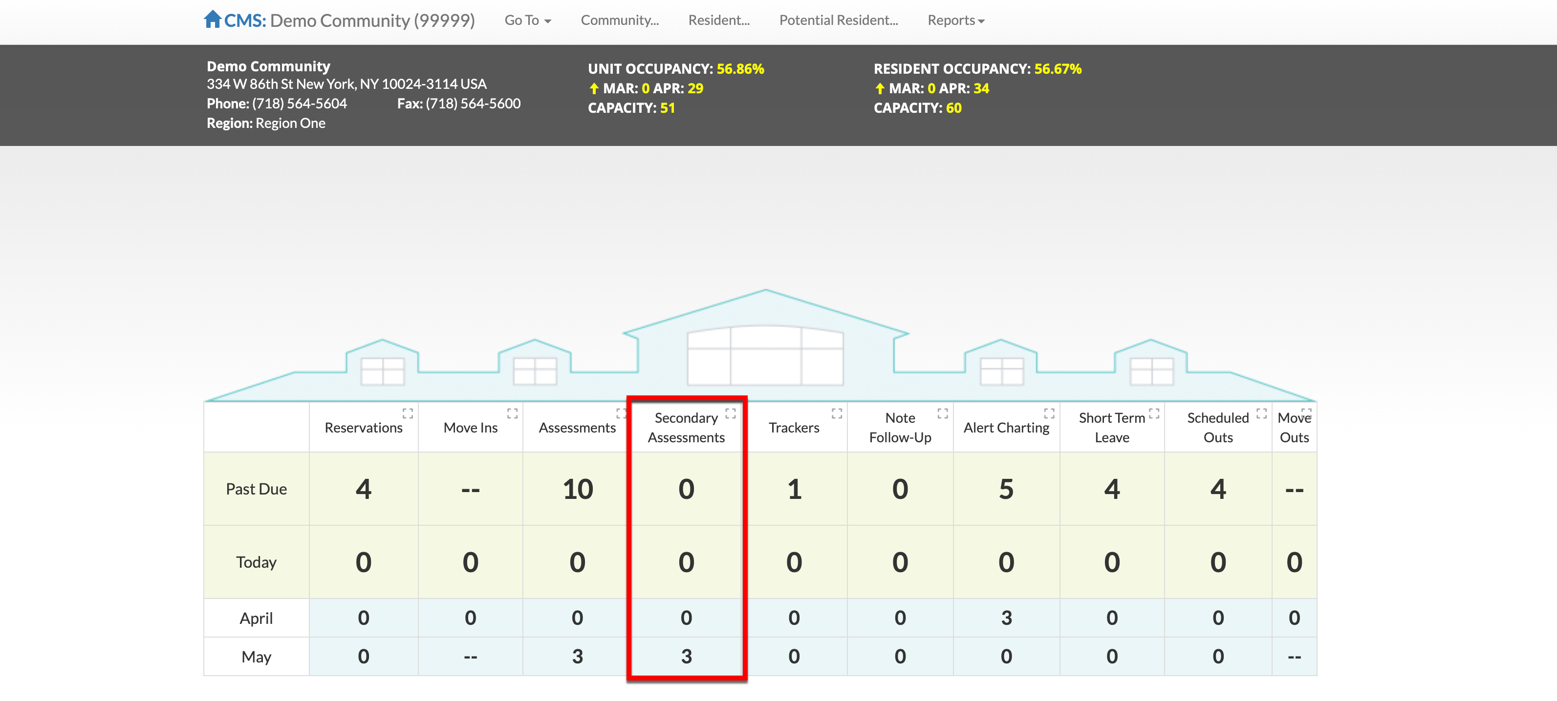 A new column for tracking Secondary Assessments due has been added to the Aline Care Dashboard.