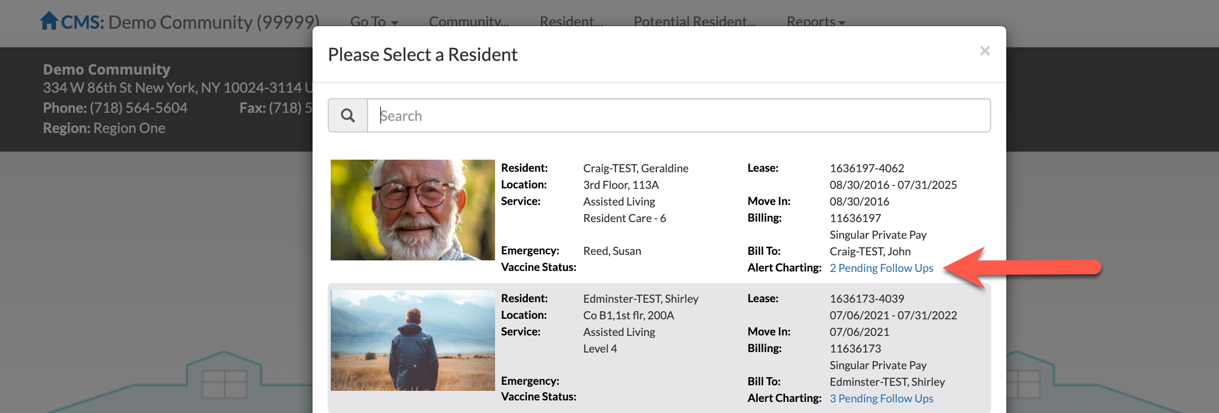 - Updated Resident Note Follow-Up history to only display Follow-Ups that have been completed. Follow-Ups will no longer display Effective Date, Create By, and Create Date. Follow-ups will display the Follow-Up Date & conditionally will display the Follow Up End Date, if one has been selected.