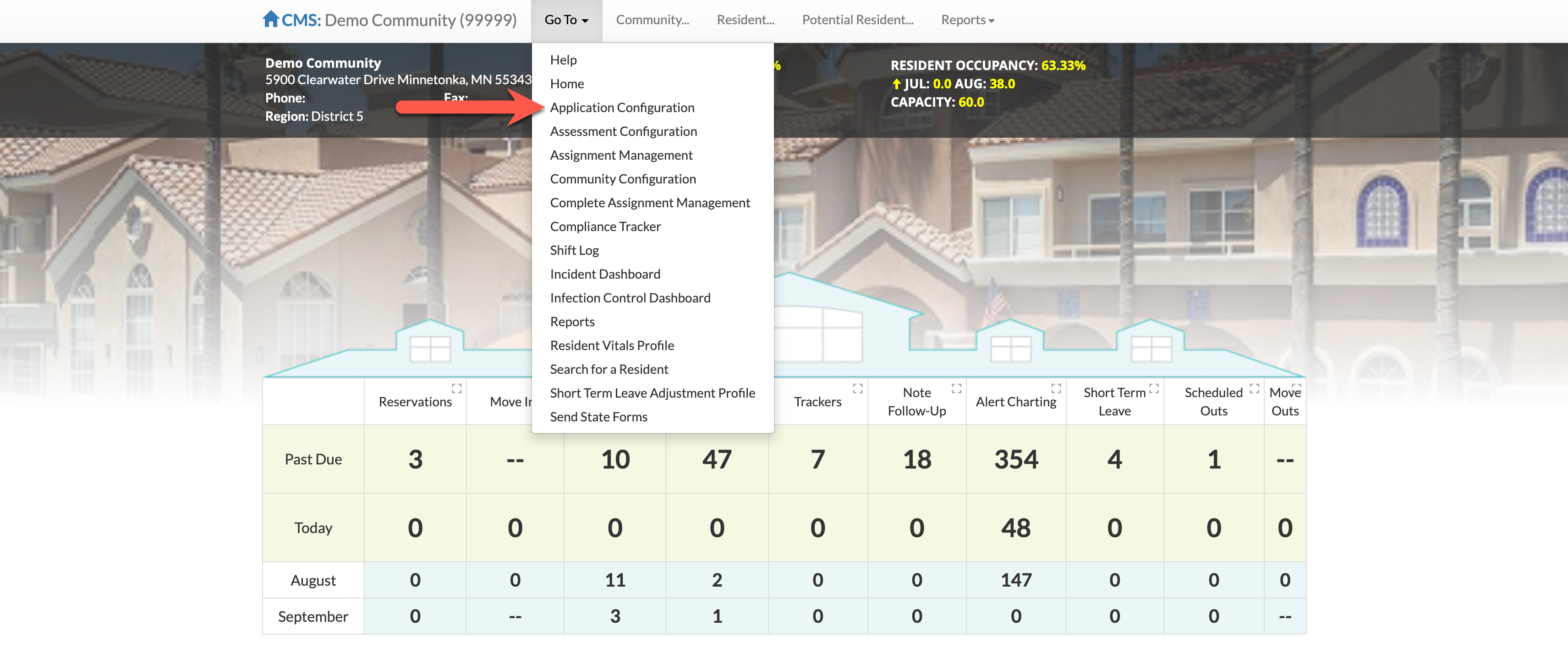 Step 1: To get started, let's hop into the Go To menu and select Application Configuration.